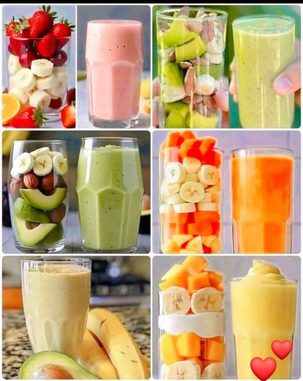 1. Koktajl truskawkowo-bananowy 1 szklanka truskawek 1 banan ½ szklanki soku pomarańczowego Zmiksuj i delektuj się! — 2. Koktajl migdałowo-awokado 1 banan ½ awokado Garść migdałów 1 szklanka mleka migdałowego — 3. Koktajl awokado z orzechami![]()
