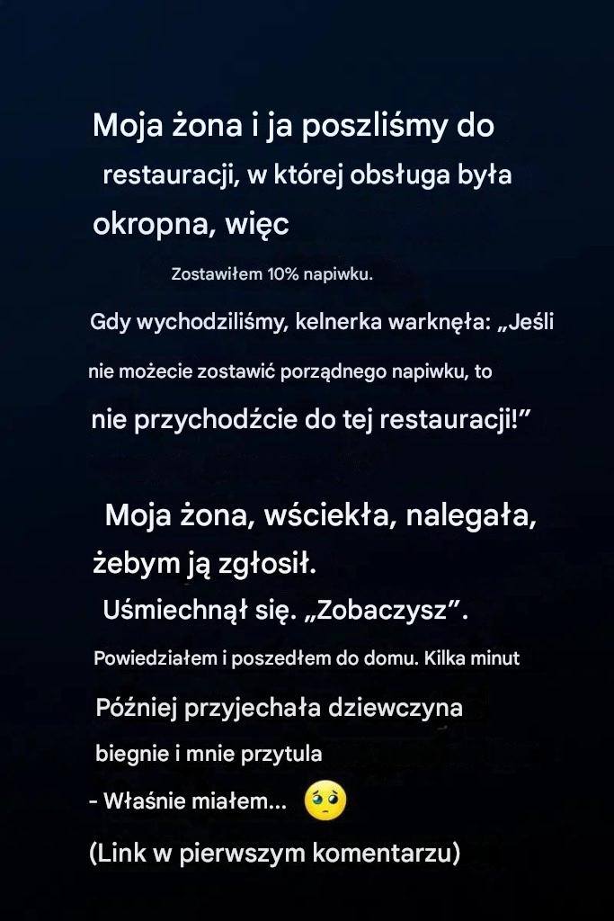 Pewnego dnia z żoną poszliśmy na kolację do restauracji, gdzie obsługa wyraźnie pozostawiała wiele do życzenia.