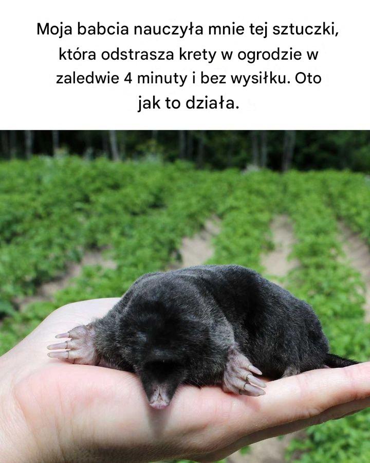 Mieszkanie w domu z bujnym ogrodem może być przyjemnością, ale kiedy krety postanawiają uczynić z Twojego ogrodu swój nowy dom, sytuacja szybko może się pogorszyć. Te małe stworzenia słyną z kopania tuneli, które niszczą korzenie roślin i kwiatów. Chociaż istnieje wiele komercyjnych produktów, które obiecują rozwiązanie tego problemu, często są one drogie – i nie zawsze skuteczne. Na szczęście istnieje prosty, sprawdzony sposób, którego używała moja babcia, aby odstraszyć krety, a który zajmuje zaledwie cztery minuty i praktycznie nie wymaga wysiłku.