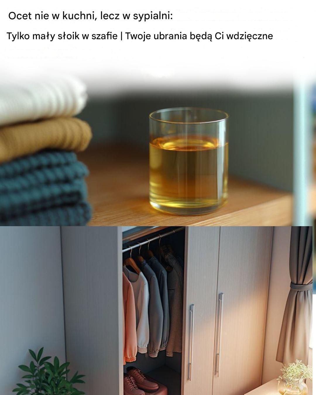 Ale czy wiesz, że ocet może odmienić Twoją sypialnię, a zwłaszcza szafę? Wystarczy umieścić w szafie mały słoik octu, by Twoje ubrania zyskały mnóstwo korzyści.