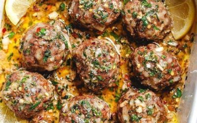 Pieczone klopsiki z indyka z sosem maślano-cytrynowym z czosnkiem